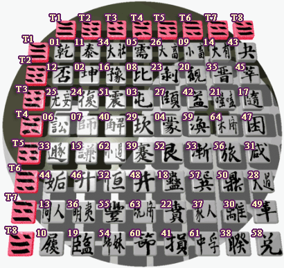 Regarder à l'intersection de la colonne du trigramme supérieur avec la ligne du trigramme inférieur